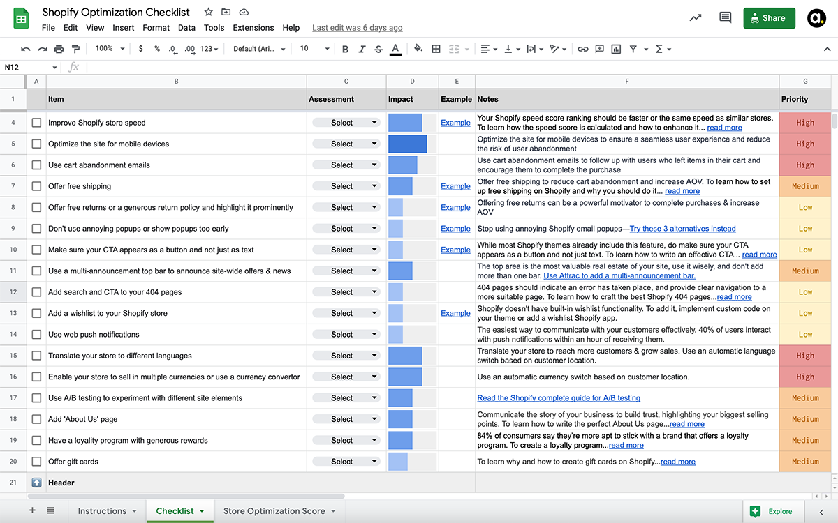 One of the unique features of our checklist is the Optimization Score. This score measures the overall health and performance of your Shopify store and provides you with a clear understanding of where you can improve.